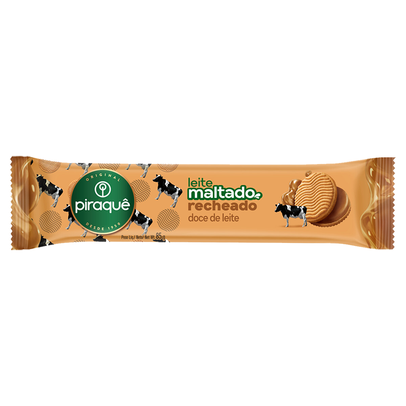 BISCOITO PIRAQUE LEITE MALTADO RECH DOCE DE LEITE 85g